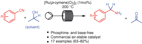 Rapid Continuous Ruthenium-Catalysed Transfer Hydrogenation of Aromatic Nitriles to Primary Amines