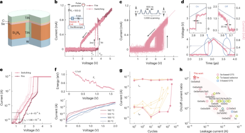 Charge-triggered switching mechanism in selenium selector enabling ultralow leakage current.