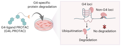 Degradation of G-quadruplex-binding proteins in chromatin using G4-ligand-based proteolysis-targeting chimeras.