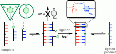 Sequence-selective pulldown of recognition-encoded melamine oligomers using covalent capture on a solid support.