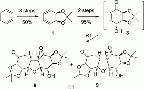 (±)-trans,cis-4-Hydroxy-5,6-di-O-isopropylidenecyclohex-2-ene-1-one: Synthesis and Facile Dimerization to Decahydrodibenzofurans