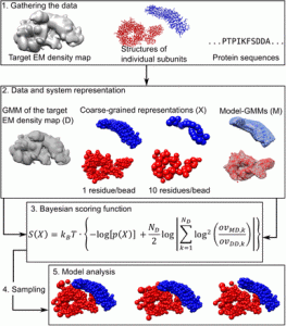 Bayesian weighing of electron cryo-microscopy data for integrative structural modeling