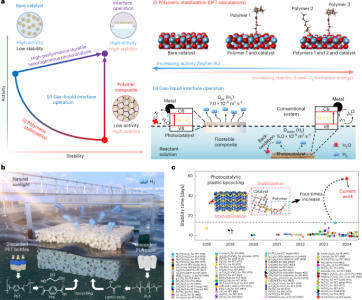 Polymeric stabilization at the gas-liquid interface for durable solar hydrogen production from plastic waste.