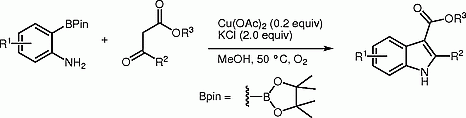 Synthesis of indoles by copper-catalyzed heteroannulation of o-aminophenylboronic acid pinacol esters with β-keto esters