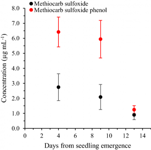 Methiocarb metabolites are systemically distributed throughout corn plants grown from coated seeds