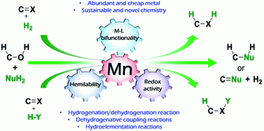 Manganese-catalyzed hydrogenation, dehydrogenation, and hydroelementation reactions.