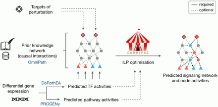 From expression footprints to causal pathways: contextualizing large signaling networks with CARNIVAL