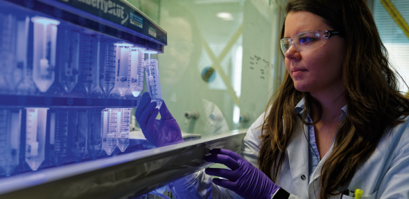 Sona Krajcovicova, a postdoctoral research fellow in the Spring group, works on stabilising peptides for safe and stable drug delivery.